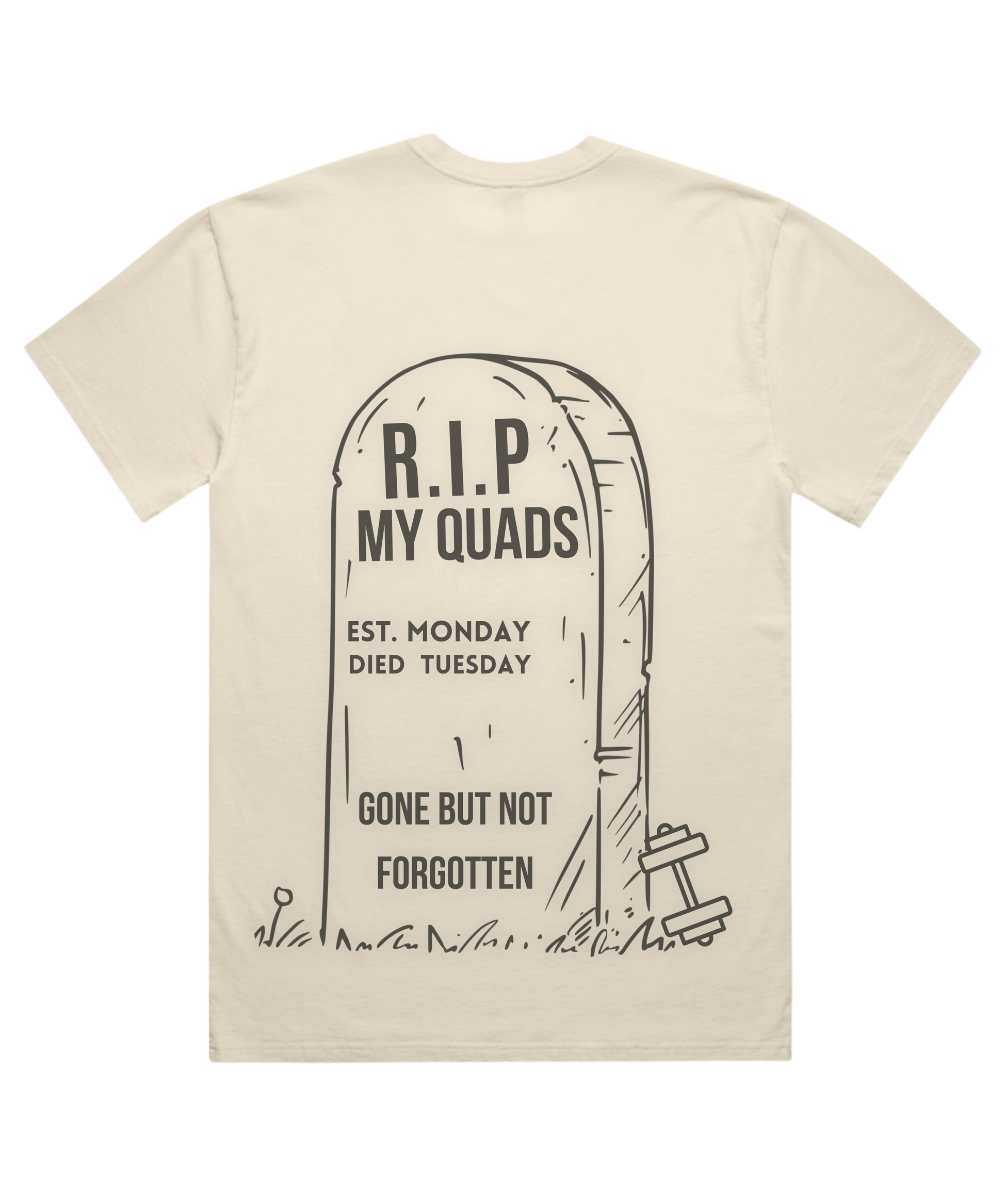 Designed for those who take their squats seriously and their recovery even more so, the "RIP My Quads" t-shirt is a hilarious tribute to every gym warrior who’s limped out of the gym like a legend.